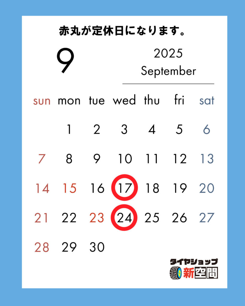 2025年9月の定休日になります!