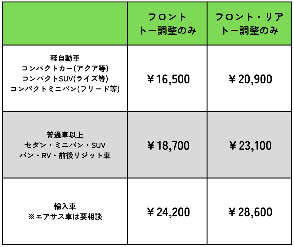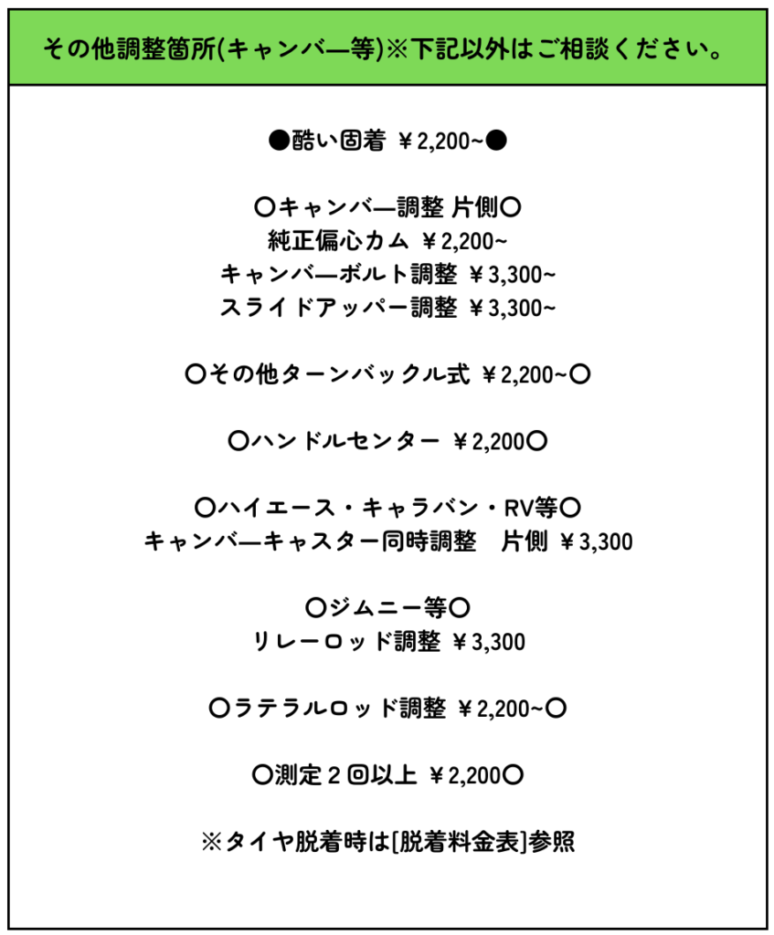 お車に合わせた調整を行っております